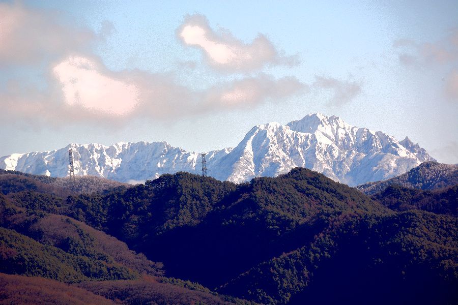 高い山々(中央アルプス/南アルプス)はすっかり雪山に変わって来た。この冬は暖冬らしいが……。