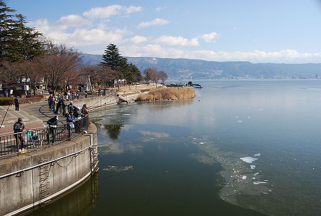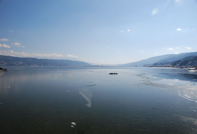 昨日(1/16)の朝は冷え込み諏訪湖は最低気温-10℃で広範囲で薄氷が張った。-10℃の最低気温が