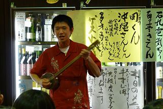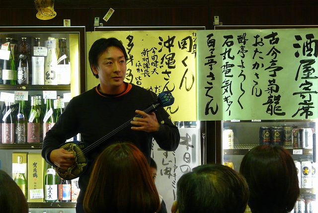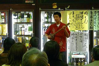 酒屋の若旦那の三線。 若旦那は毎週月曜日に子供に三線を酒屋で教えておられる。