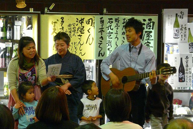 Sさん親子と酒屋の女将さんと石丸電気ギターさんの唱歌