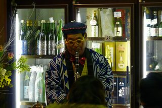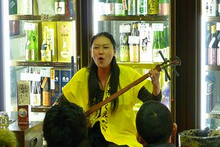 今回の〆は酒屋の若旦那の三線に合わせて沖縄の踊りを皆で踊った。