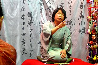 飛び入り出演の女性。威勢の良い「いなかっぺ大将(だいちゃん)音頭」を披露して拍手喝采