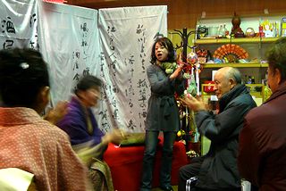 定番の歌「黒田節」、「さんさ時雨」を唄うここのご隠居さん |