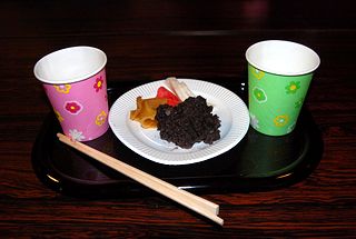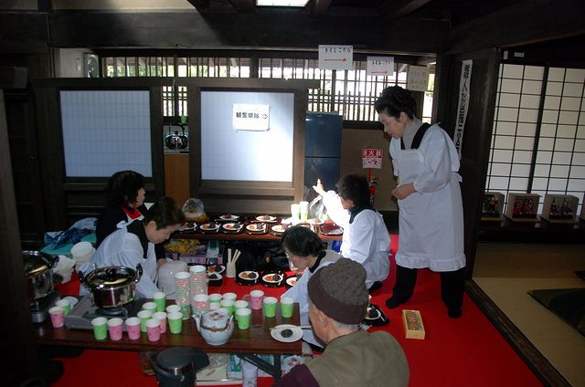 訪れた人には甘酒/お茶におはぎが振舞われた