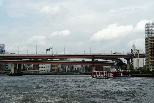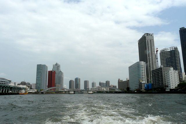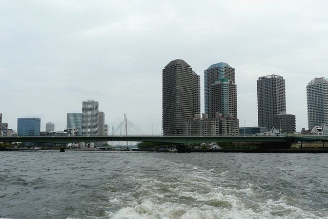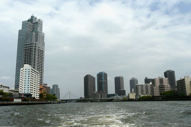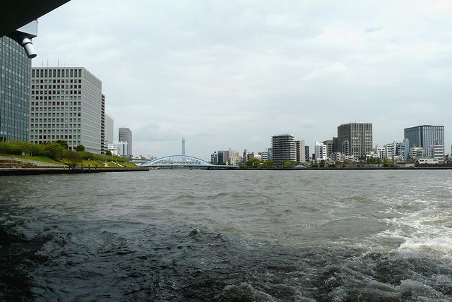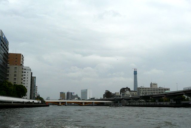 水上バス浅草乗船場から。 こうやって見るとあまり高いと感じない。