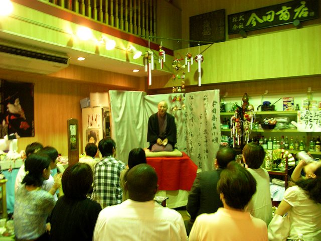 茅場町駅から新川の勤め先に向かう通勤路にある酒屋さん「今田商店」で月一回の「酒屋寄席」。今年6回目。