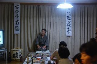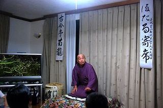 プロの落語家「古今亭菊龍」師匠に来て戴き「ほたる寄席」を酒屋の女将さんと企画。 東京から女将さんと来られた方、
