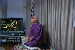 皆さんに大いに笑って貰えました(^_^)v。 TV画面には東京新川の今田商店の酒屋寄席での菊龍師匠を映して |