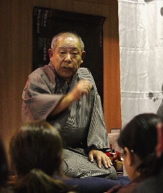 | 「楽笑会」会員の「太尾亭狸久」さんの落語。 この方はプロ級の落語や漫談をします。 | |