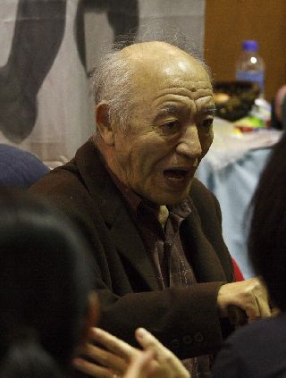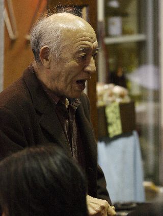 | 酒屋のご隠居。 得意な「黒田節」、「三叉時雨」を歌われる。 何度かお酒を同席で飲んだことあるが強いの何のって、遠慮するといつも叱られてしまう(;_;)。 | |