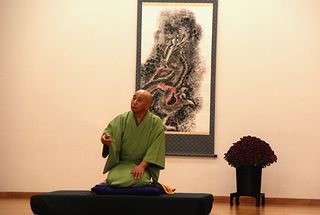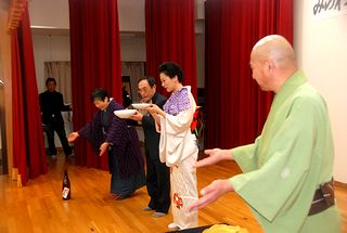 バックは「菊龍」師匠にちなんで龍の掛け軸と菊の鉢と主催者金沢氏の粋な演出 | |