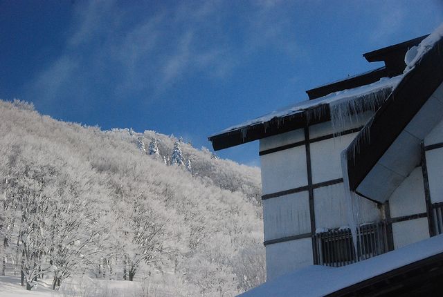 | 宿の周りには霧氷、樹氷が見える | |