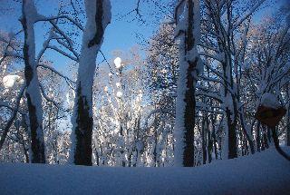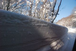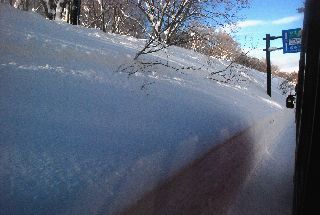 | バスの窓から。道路の両側には2mを越す積雪 | |