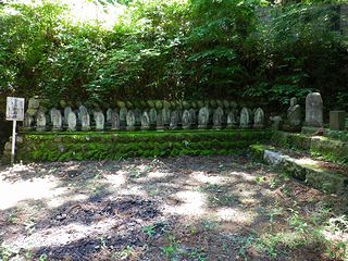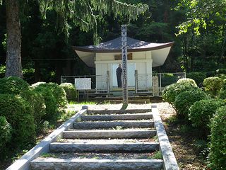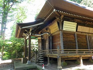 旧阿弥陀堂(かつては阿弥陀如来像はここに安置されていた)。 右は旧阿弥陀堂横にある「三十二碑石仏」 | |