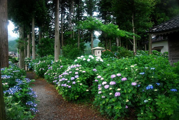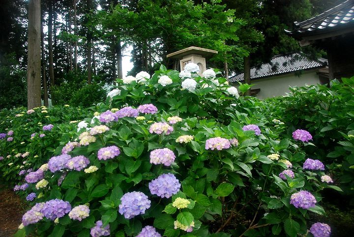 長野県下で最大のあじさい寺(深妙寺)の紫陽花が例年より5日程遅く見頃になって来た。