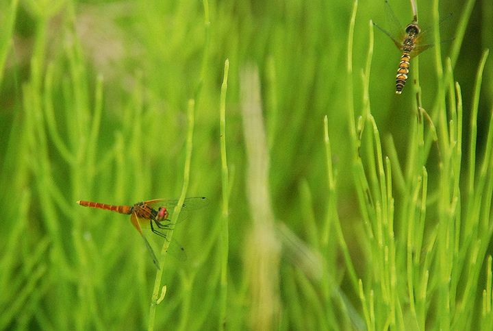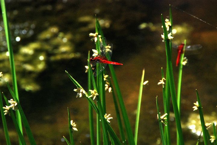 以前と同じ程度の数のハッチョウトンボが見られた。ここはトンボの楽園で数種類のトンボが飛び交っている。