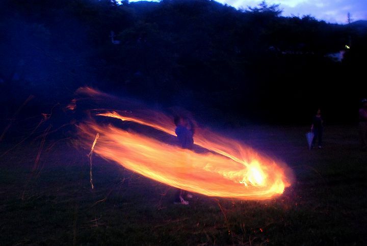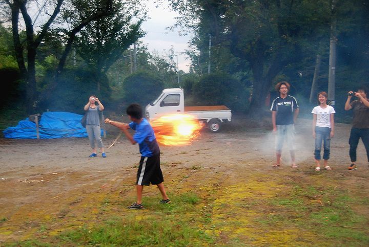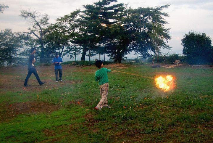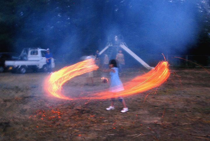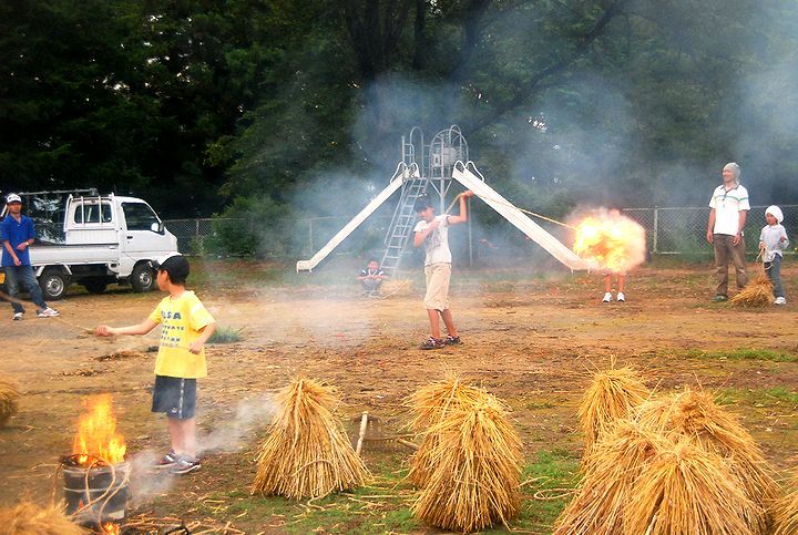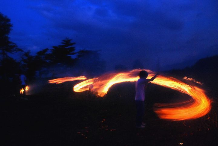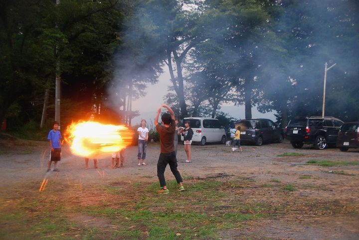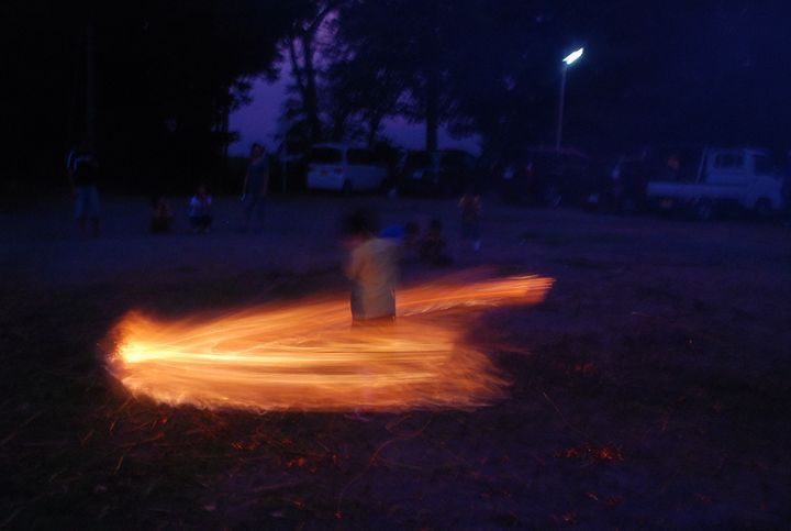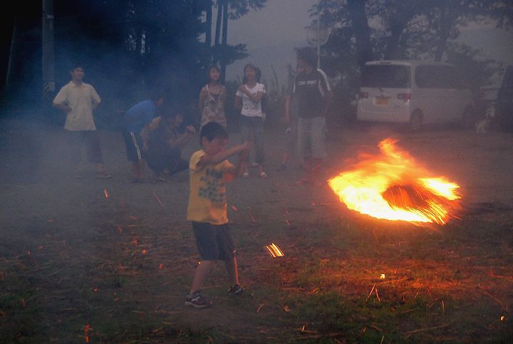 公民館活動として受け継がれて来ている。8/13に迎え万灯、8/16に送り万灯がある。雷雨接近で暗くなる前に