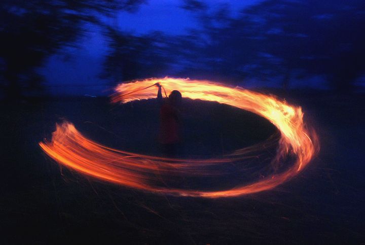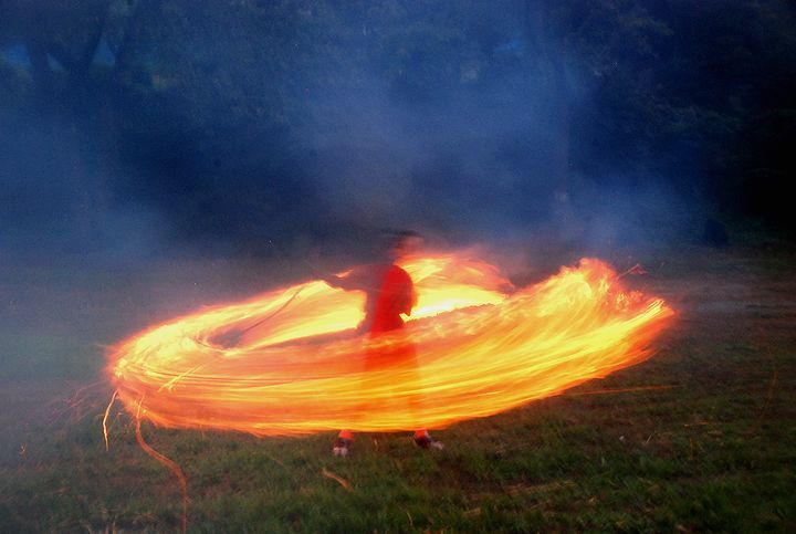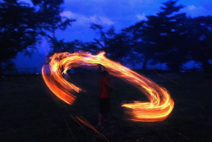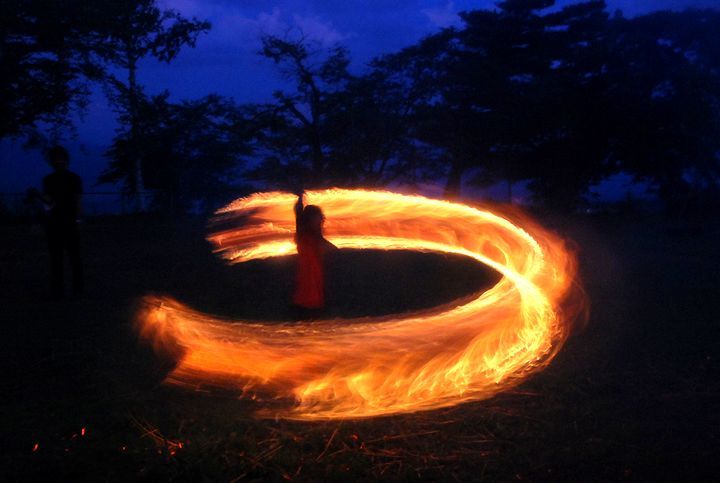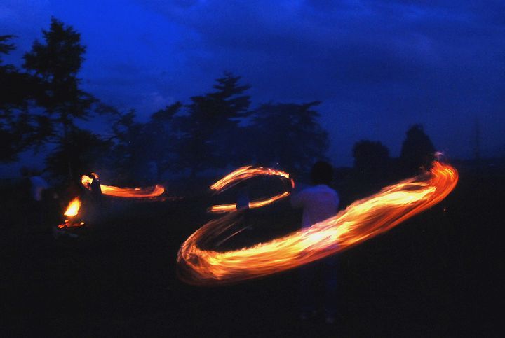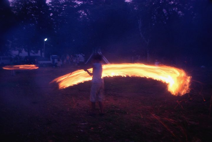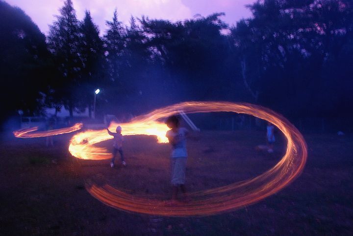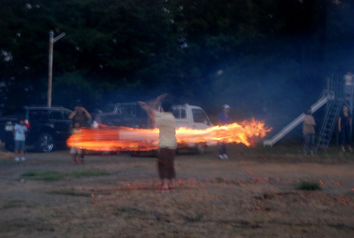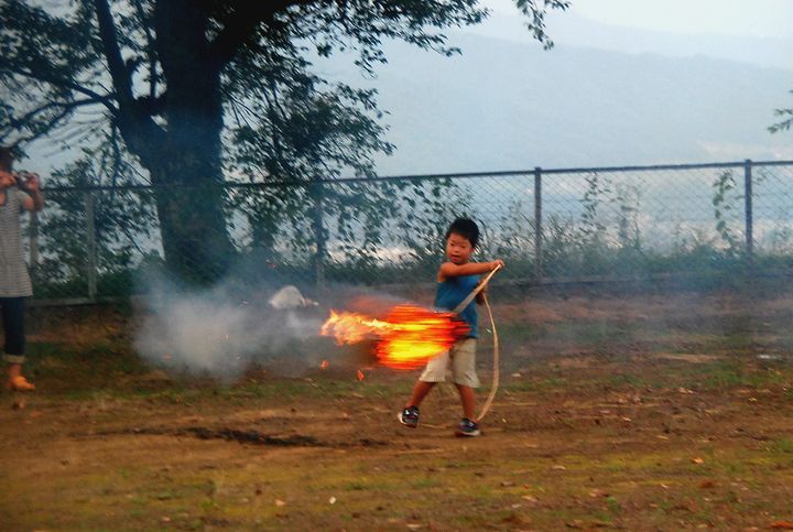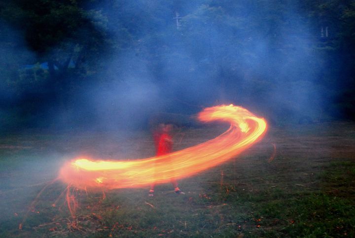 公民館活動として受け継がれて来ている。8/13に迎え万灯、8/16に送り万灯がある。雷雨接近で暗くなる前に