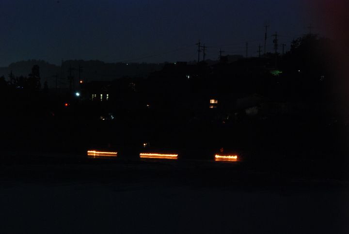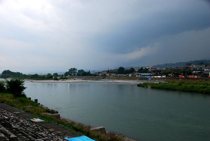 始まる頃には小降りになったが灯ろうが濡れて駄目になったのか灯ろう流しは寂しかった。花火は明神橋