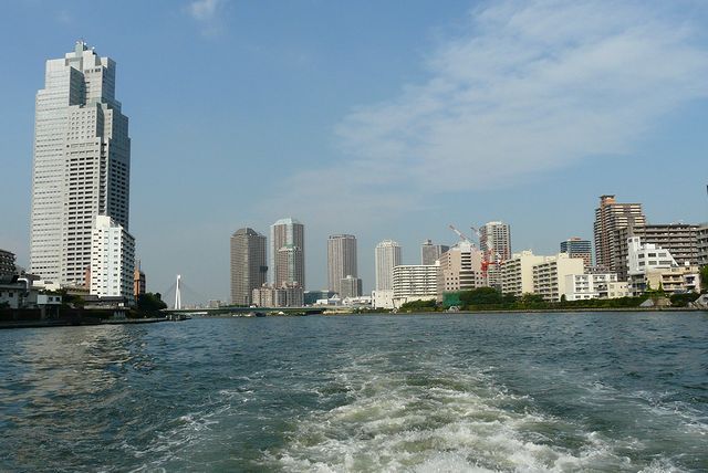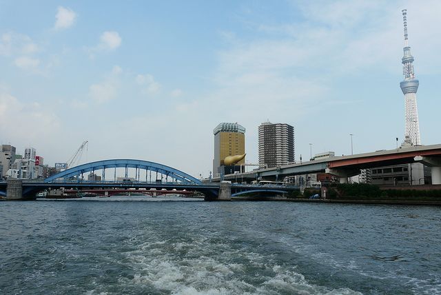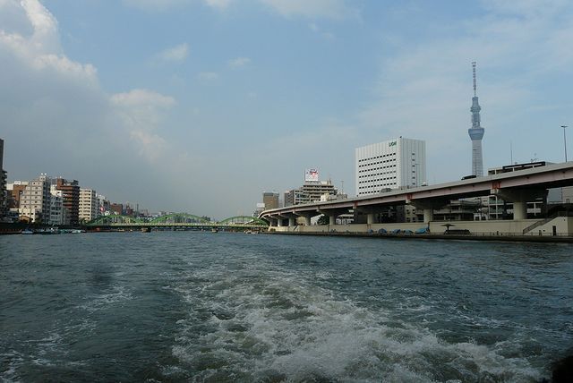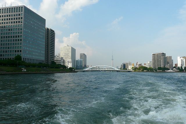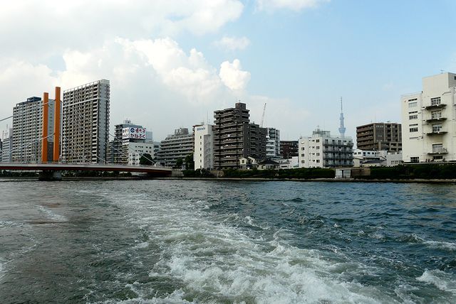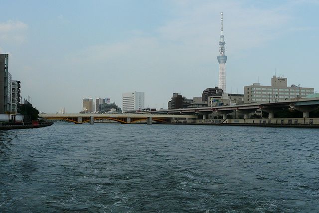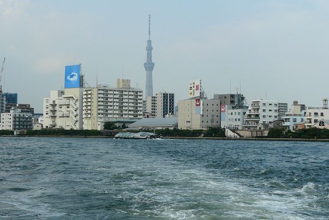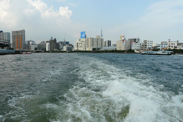 | 浅草の水上バス乗船場から見た東京スカイツリー。