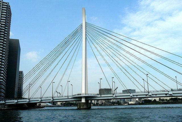 | 佃大橋。 スカイツリーが中央大橋の左に見える | |