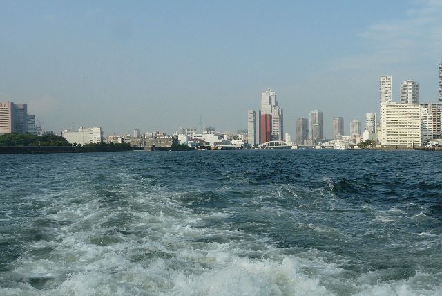 | 浜離宮を出て再び隅田川中央に。 スカイツリーが微かに霞んで見える | |