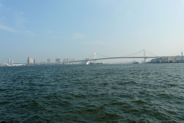 日ノ出桟橋に着きレインボーブリッジが正面に | |
