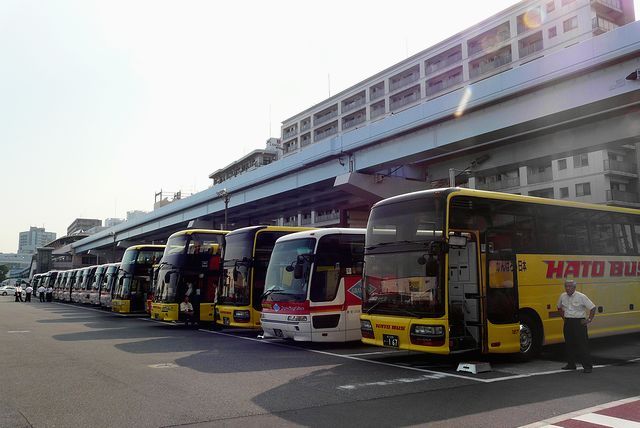 日ノ出桟橋には、はとバスや観光バスがずらり | |