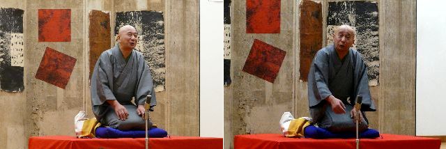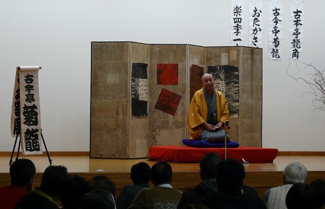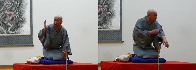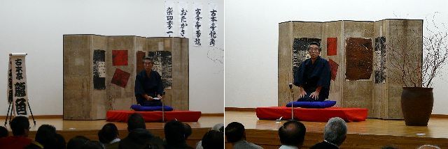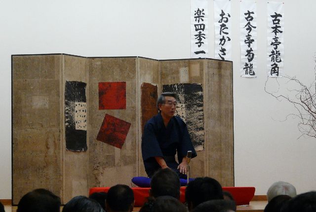 「桃太郎」の一席。バックは主催者の金沢氏所蔵の屏風 | |