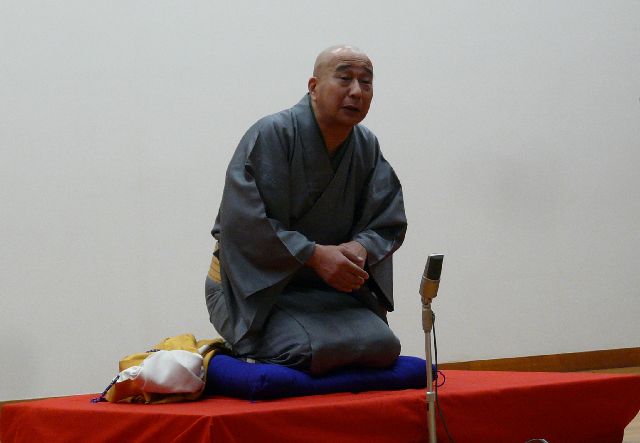 | 東京都中央区新川の今田商店(酒屋)の女将さんの挨拶。 今年も張り切ってこの「いるみ寄席」に 力を注いで下さいました。 この夜、翌日のお店の仕事で車で東京へ。 ありがとうございました。 | |