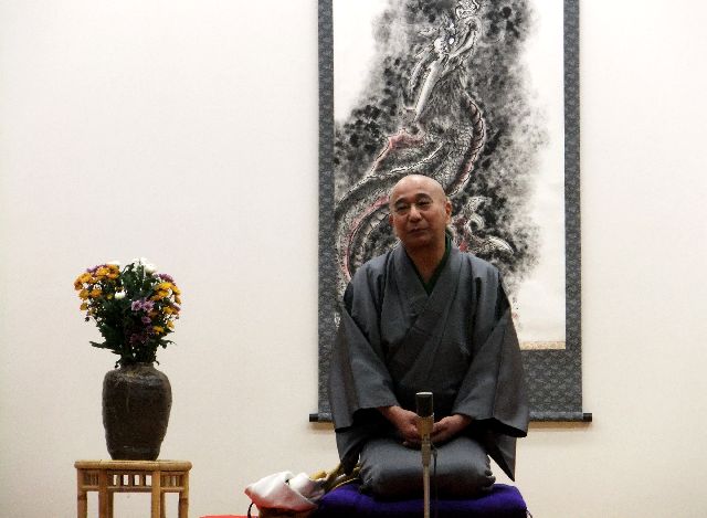 バックは「菊龍」師匠にちなんで龍の掛け軸と菊の花と主催者金沢氏の今年も粋な演出 | |
