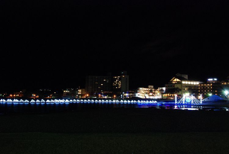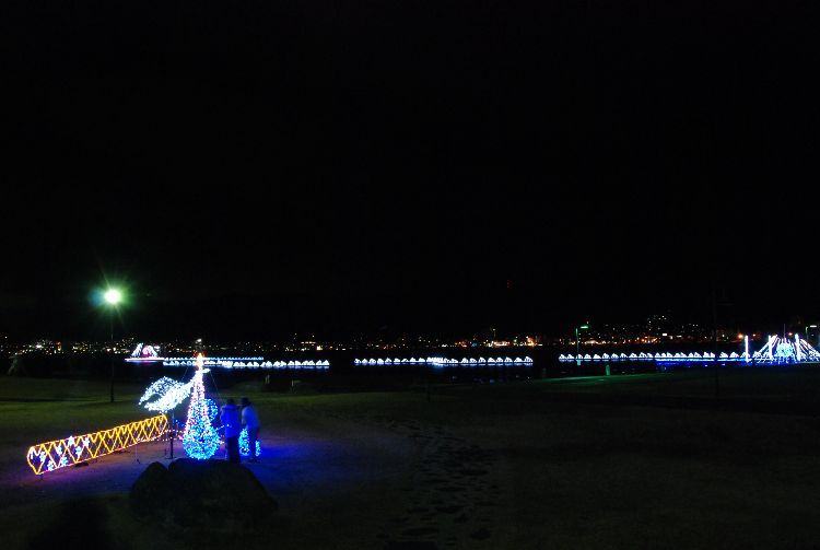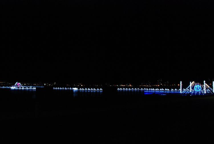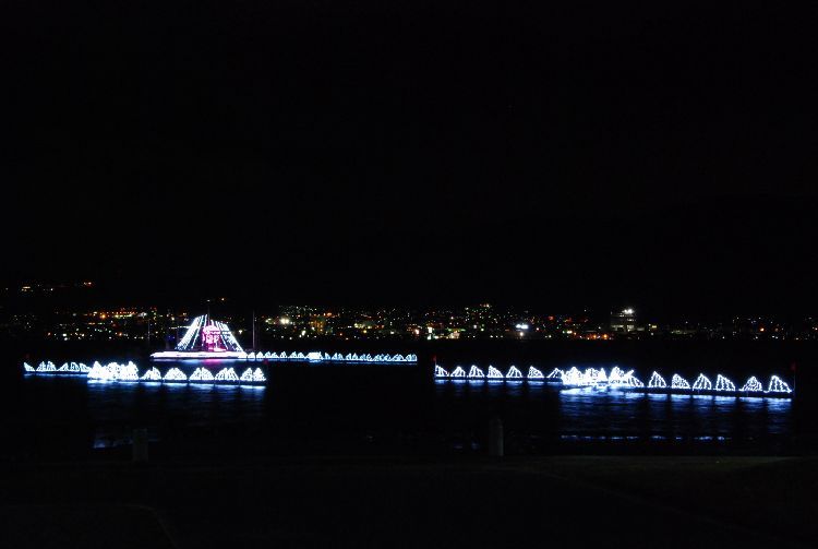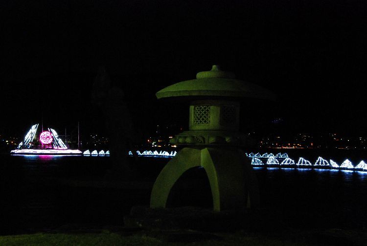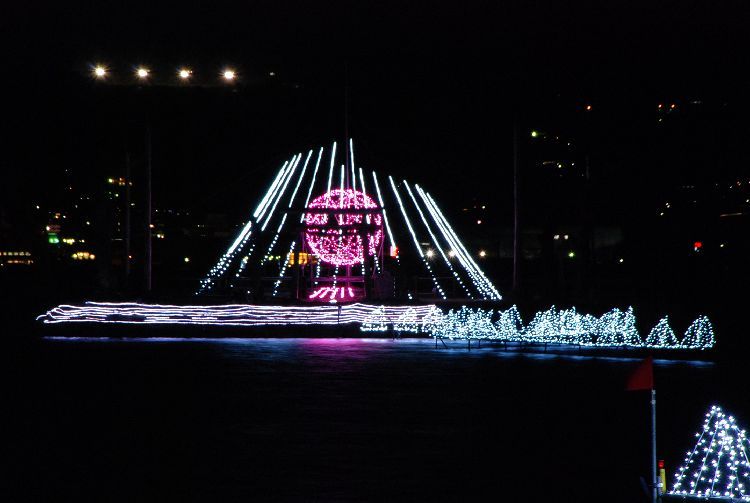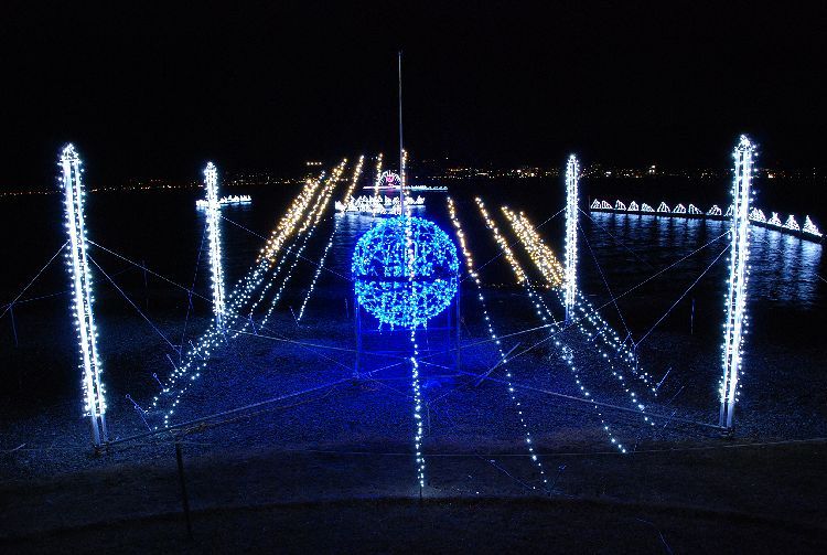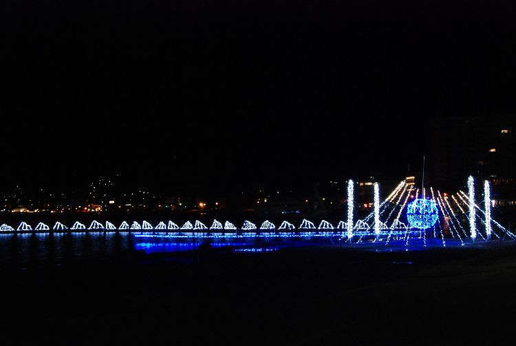 約280m沖合の初島まで光の「御神渡」が点灯。H24/2/14迄