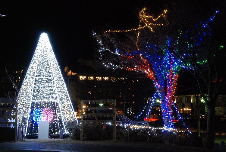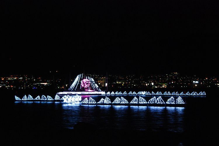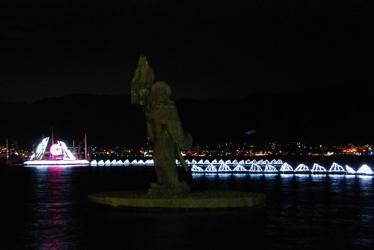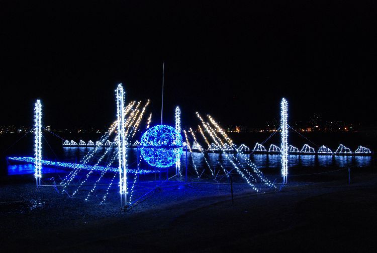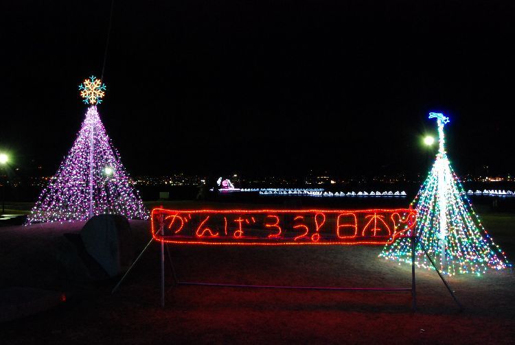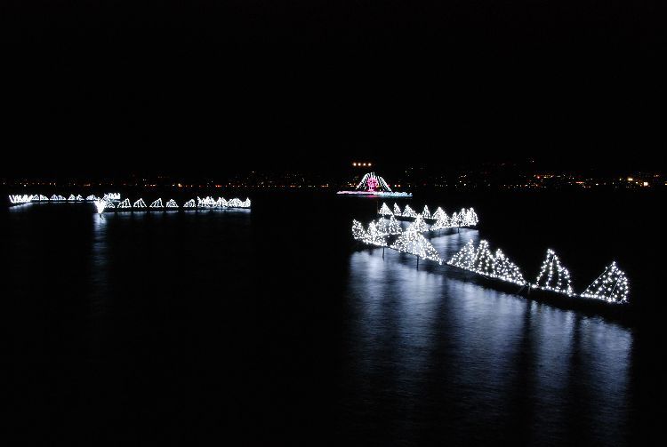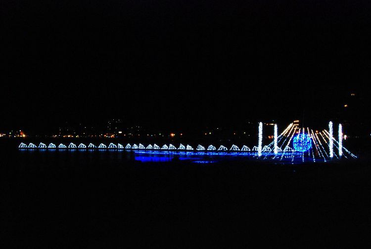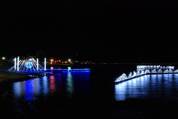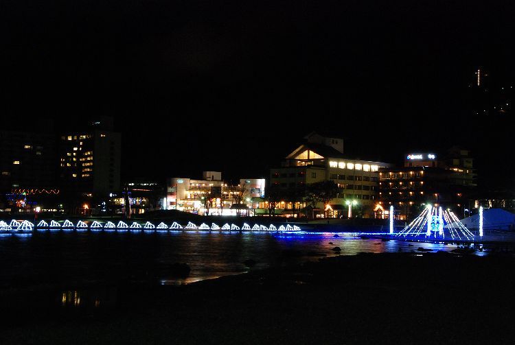 約280m沖合の初島まで光の「御神渡」が点灯。H24/2/14迄