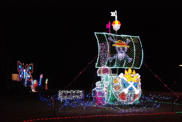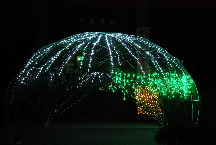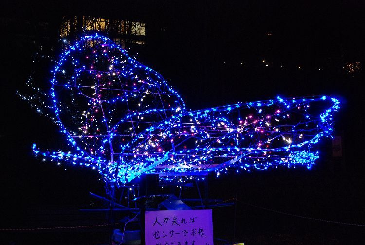 18:00〜22:00点灯。夜はとても寒いが綺麗! 何処かで見たイルミも。