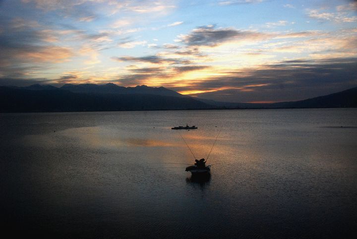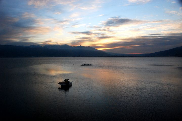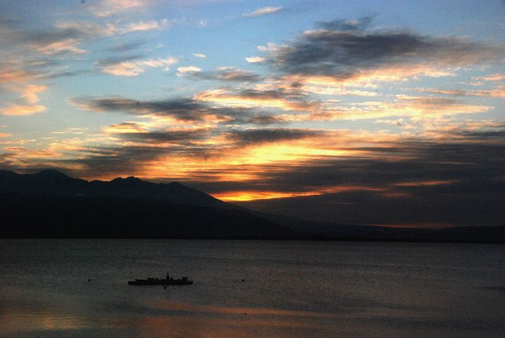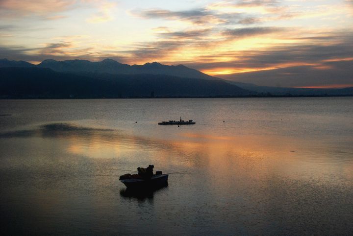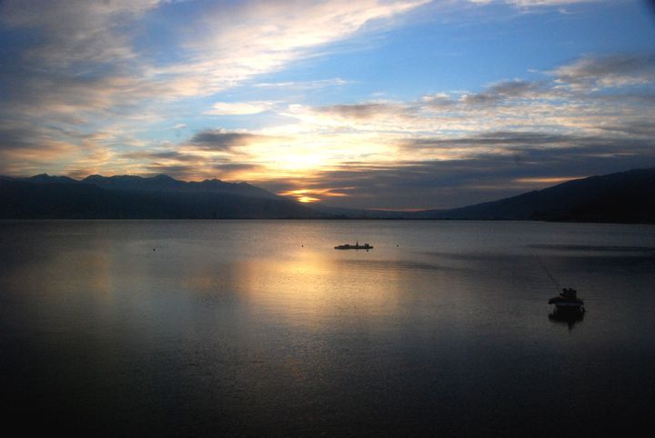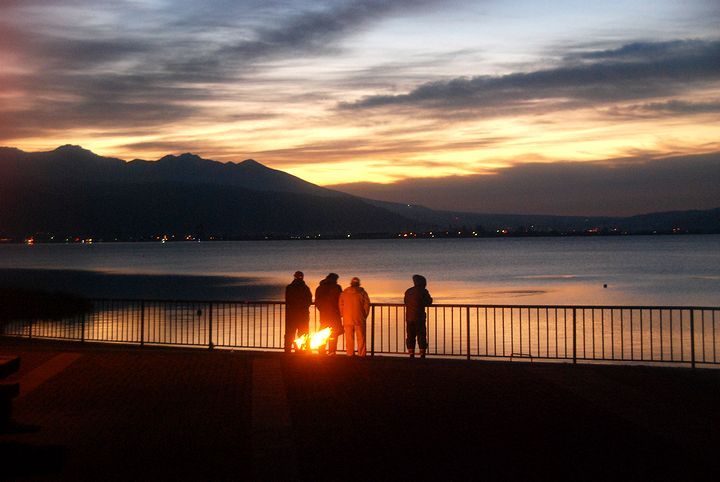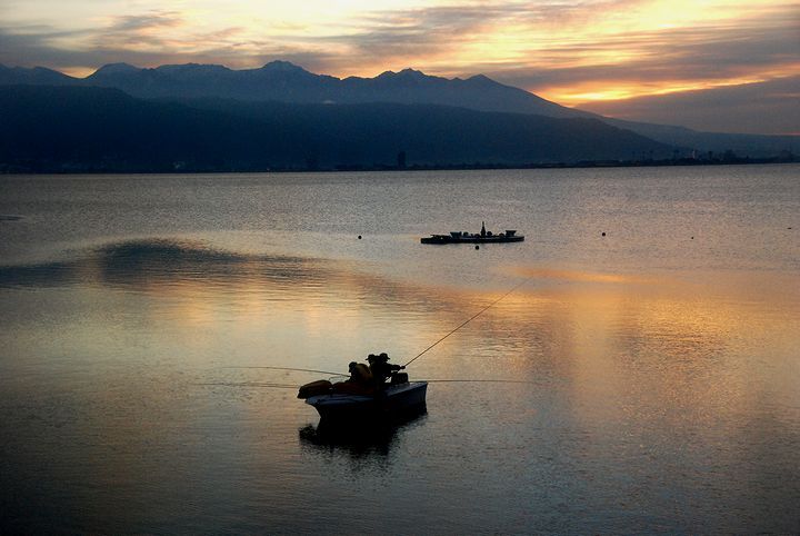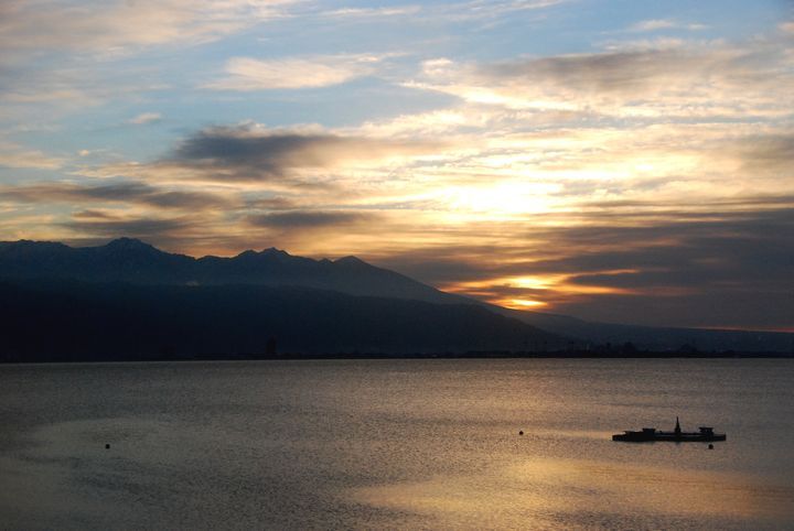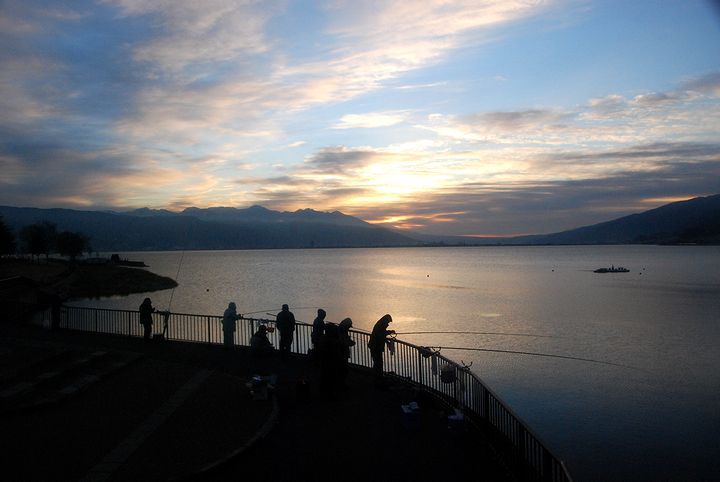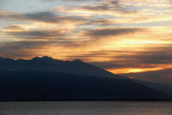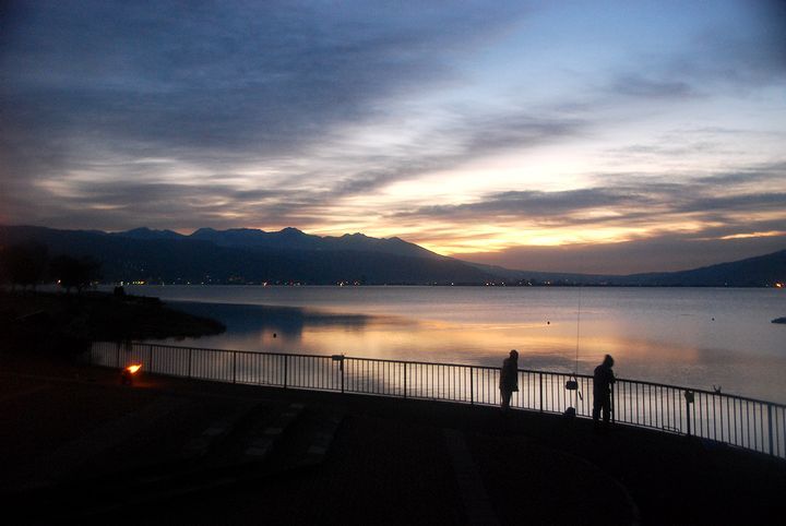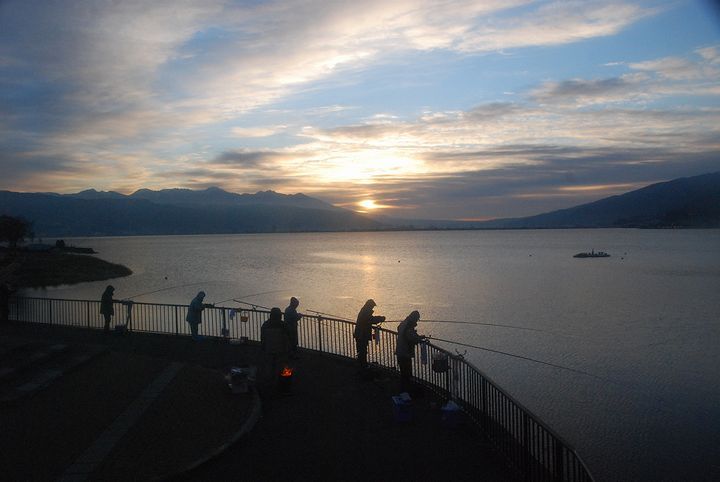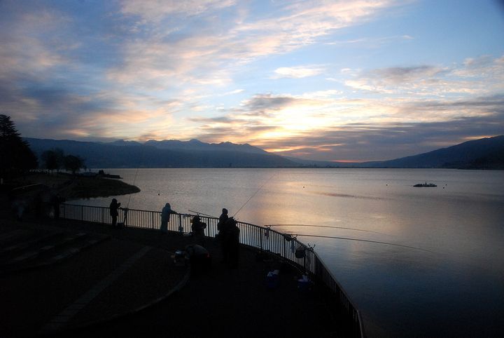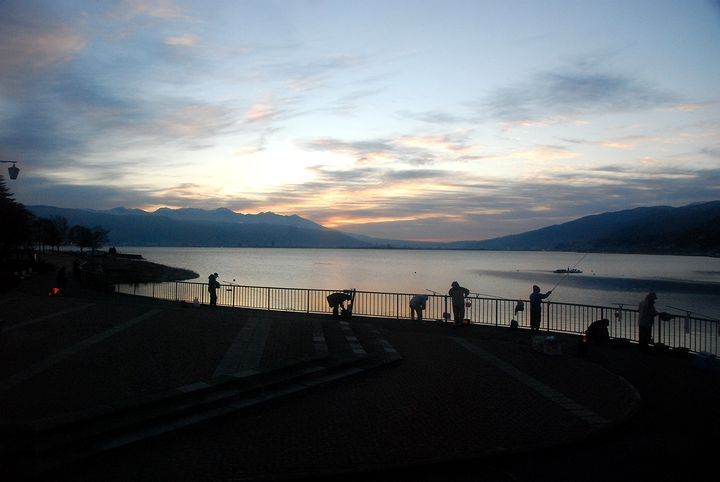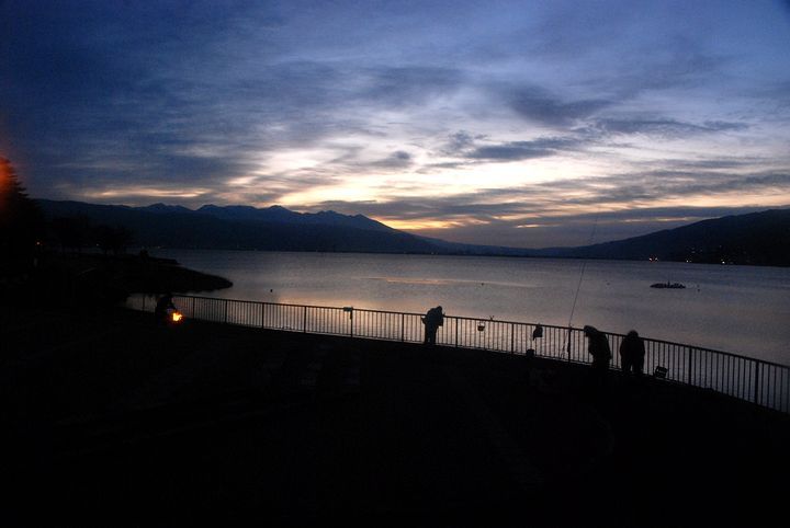 晴れ渡った朝の諏訪湖を期待して久し振りに岡谷市の釜口水門に出掛けたが残念ながら