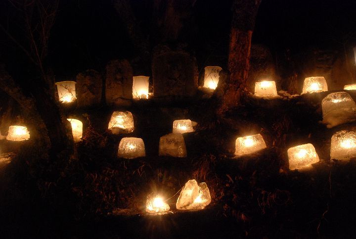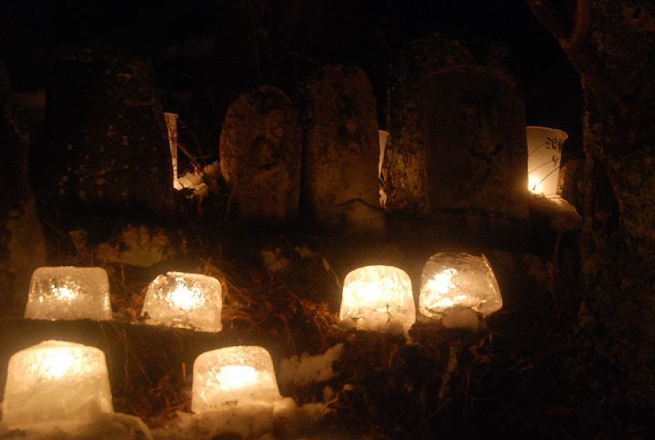 始められていたのだそうだが見たのは初めて。道祖神や石仏の傍で灯るアイスキャンドルは魅力ある。