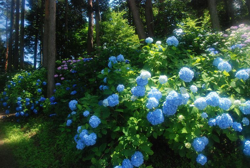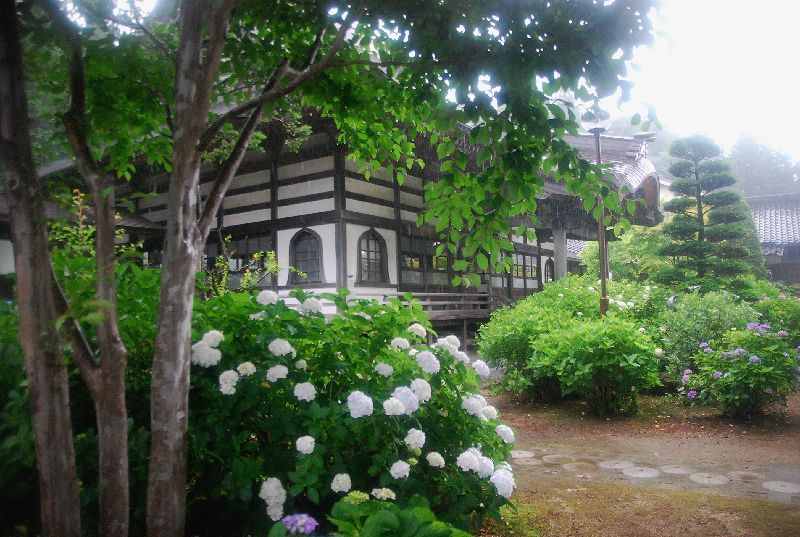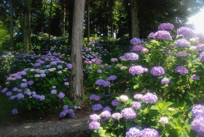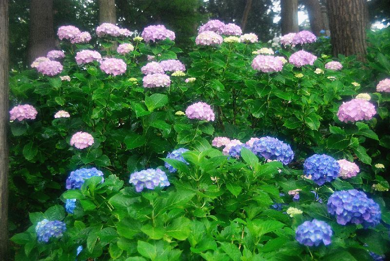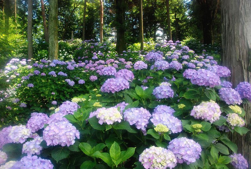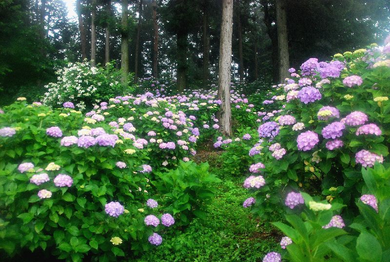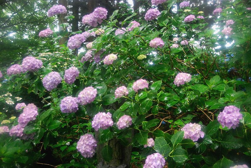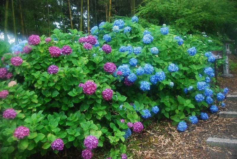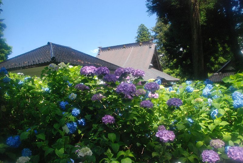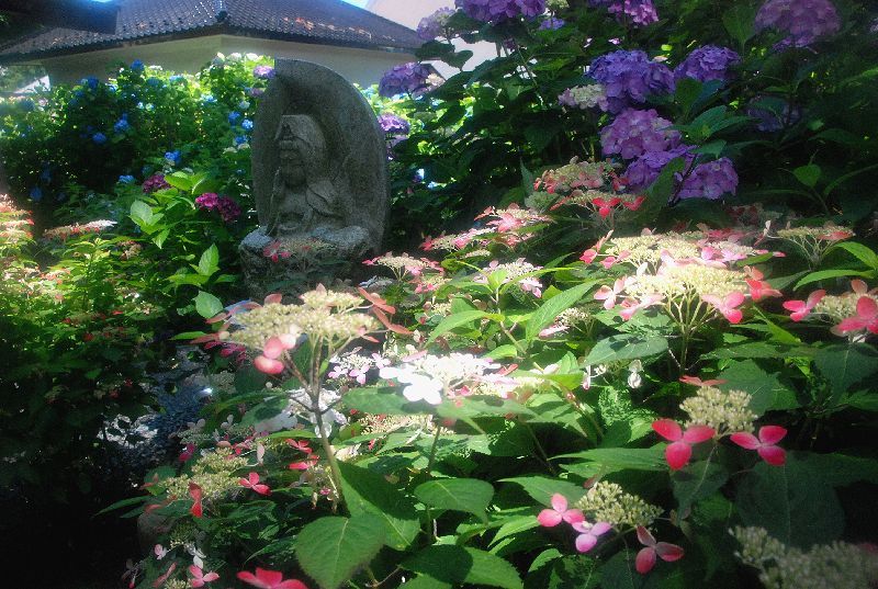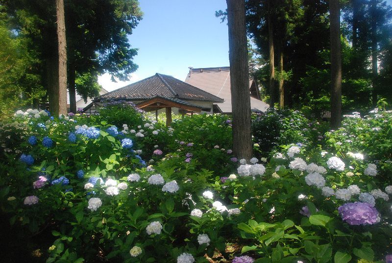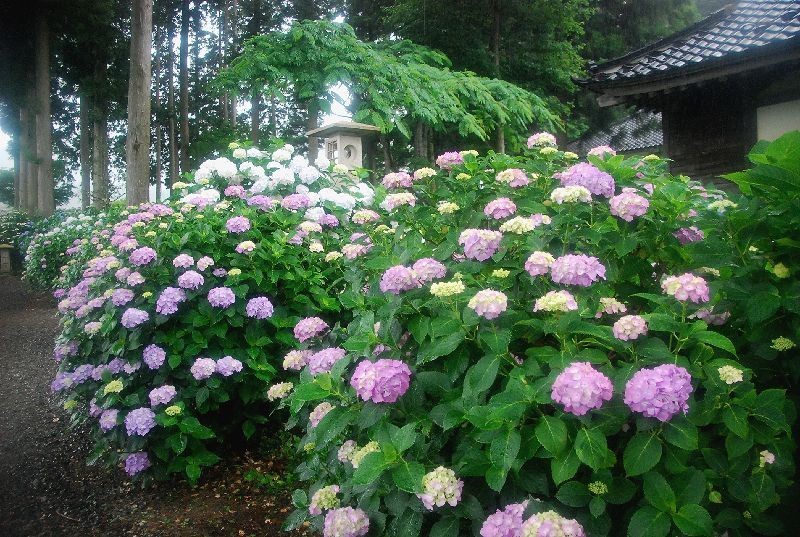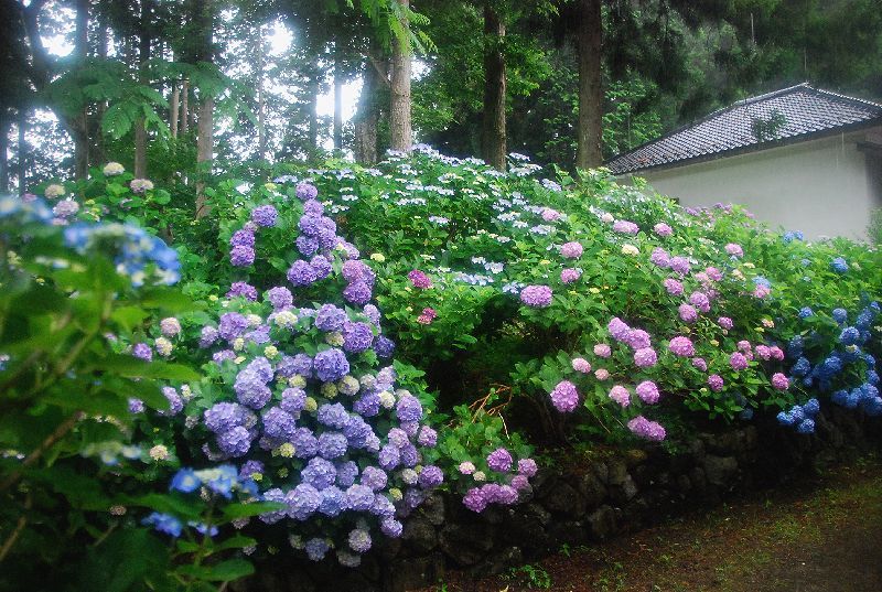 南信州で一番種類/株の多い(170種2500株)「あじさい寺」である伊那市西春近の深妙寺の紫陽花が今見頃。