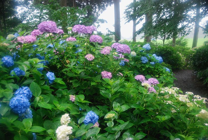 雨の降る日と晴れた日に寄ってみた。雨にしっとり濡れて咲く紫陽花の方が落ち着いて良いです。