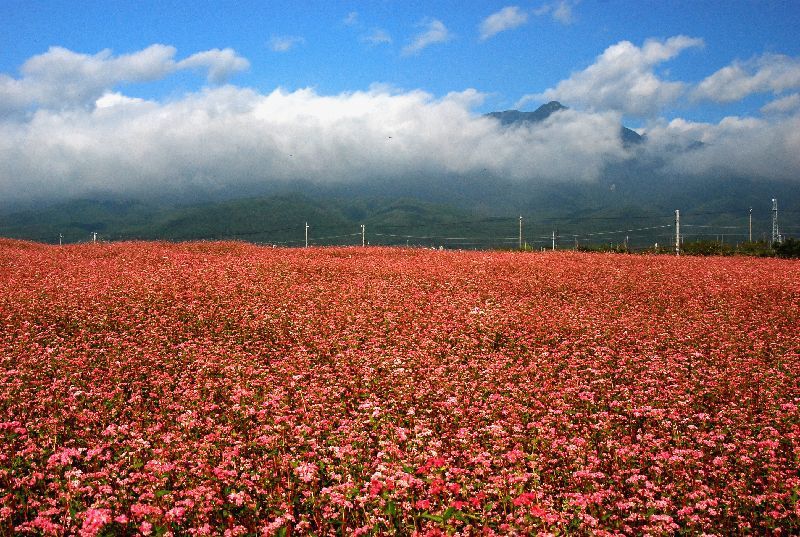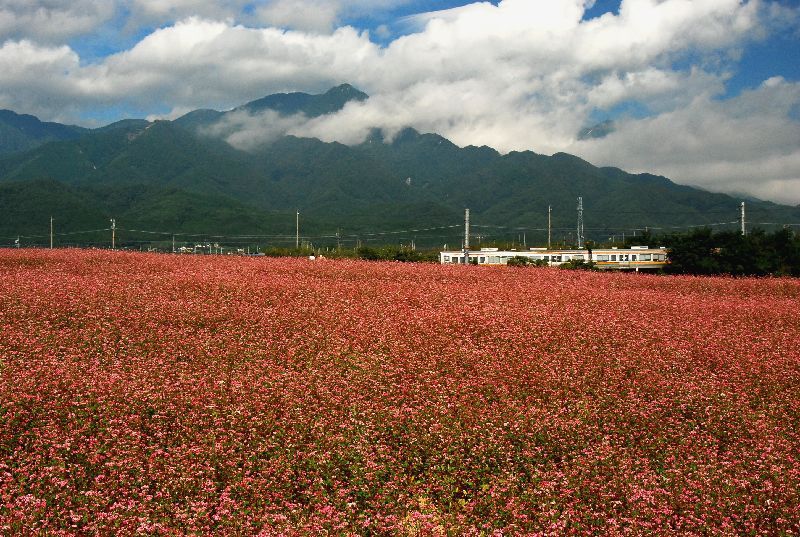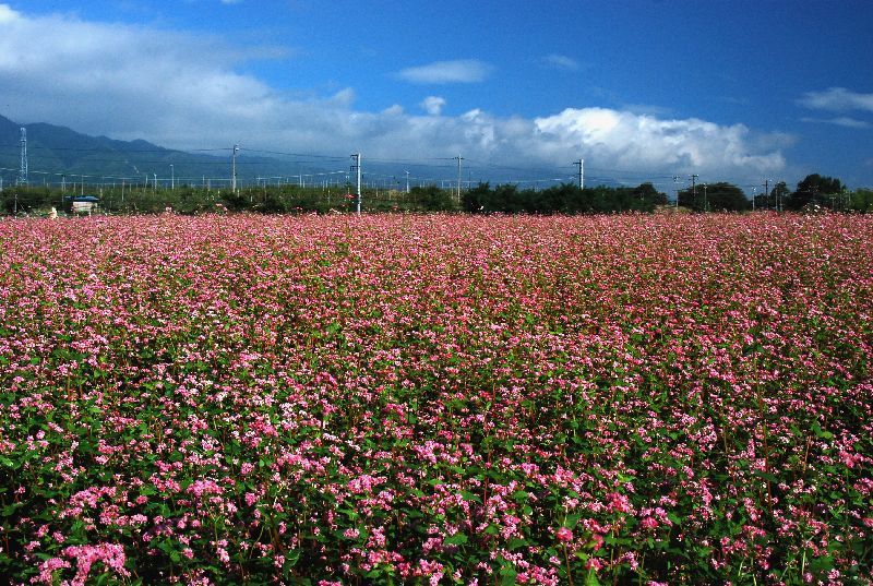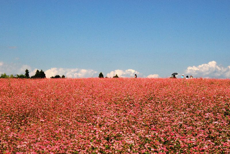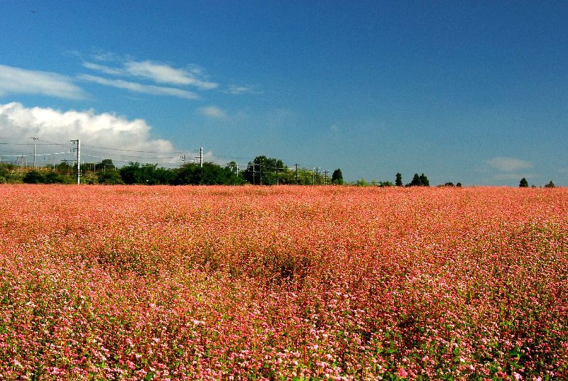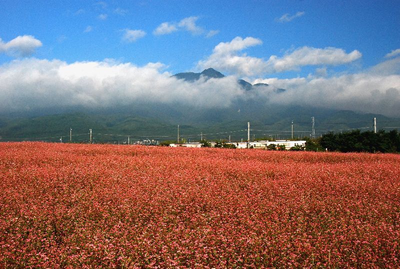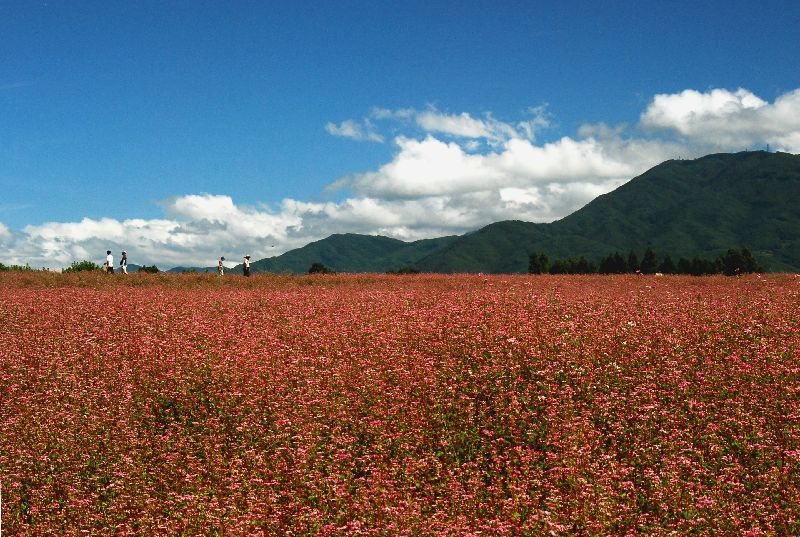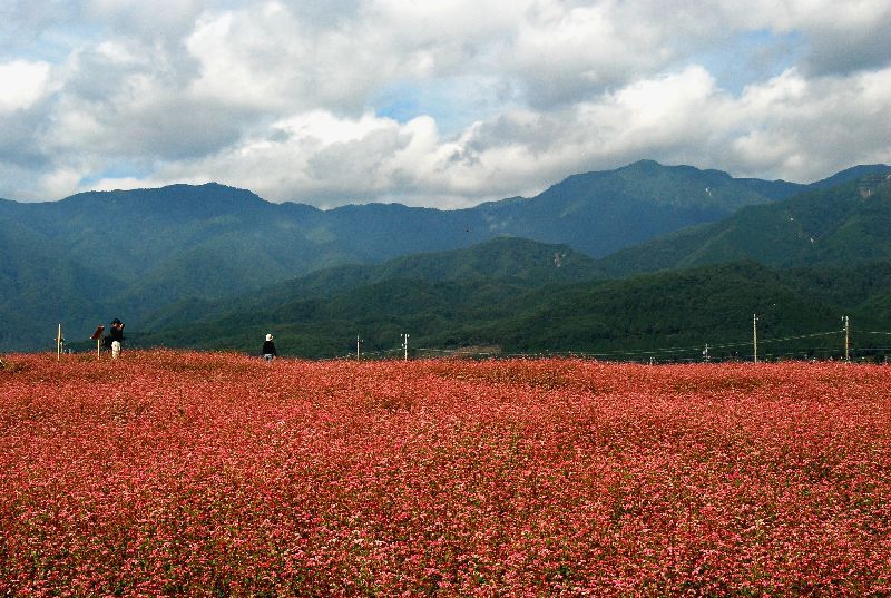 中川村田島の赤そばが見頃になって「赤そばまつり」が始まった。(9/13〜)