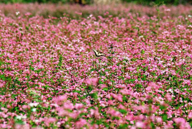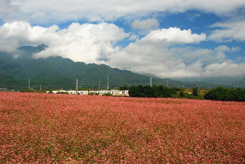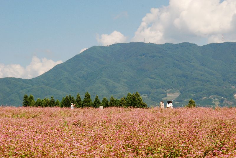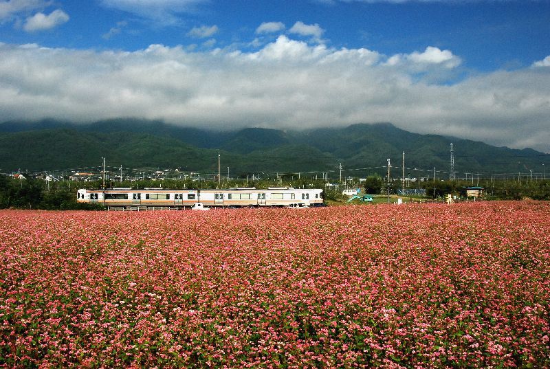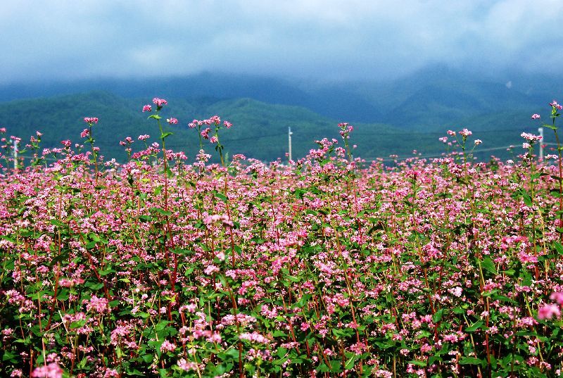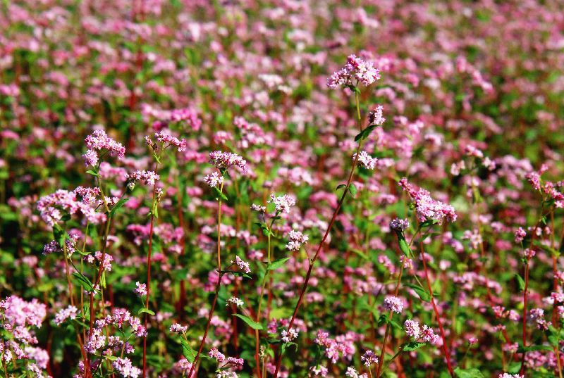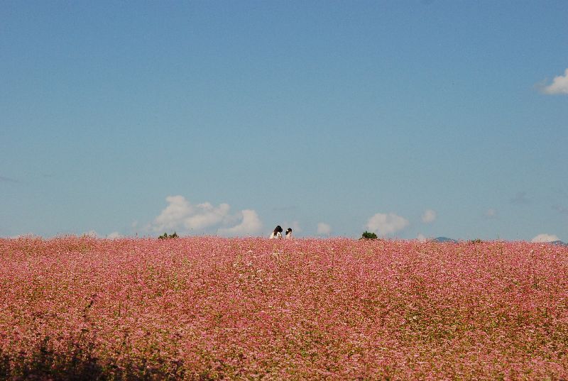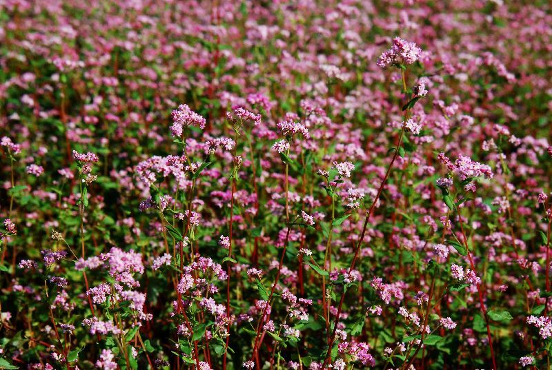 中川村田島の赤そばが見頃になって「赤そばまつり」が始まった。(9/13〜)