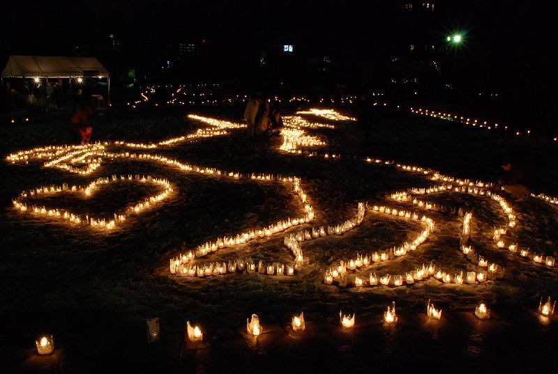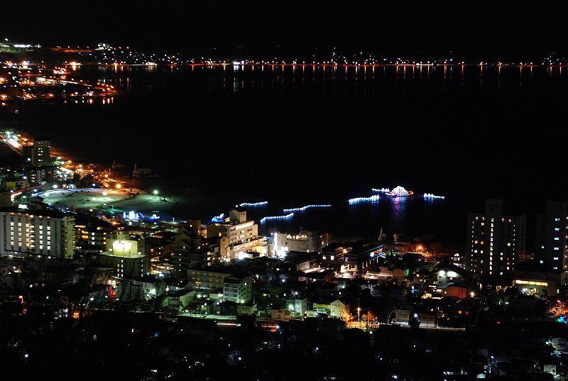 諏訪のアイスキャンドル、諏訪湖の夜景