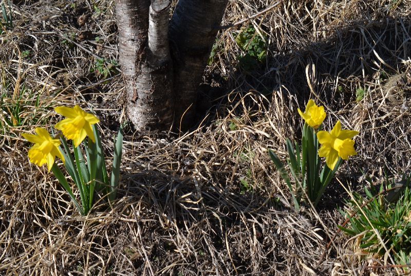まだまだ綺麗、光前寺への道路の土手の水仙は蕾で今週末には咲き出す。南割土手では咲いていた。