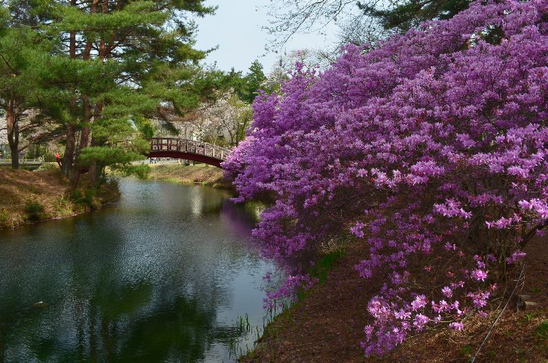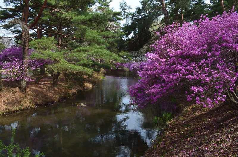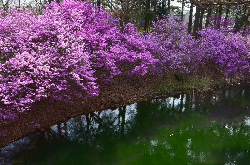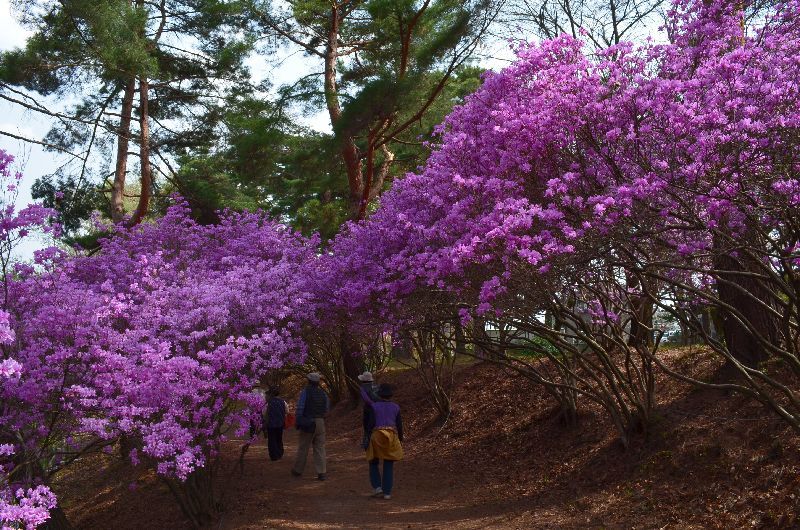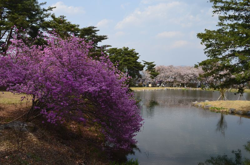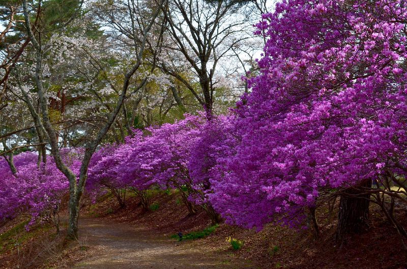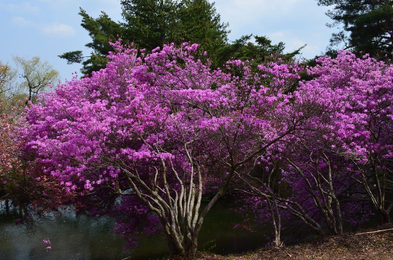 駒ヶ根市・馬見塚公園のミツバツツジ