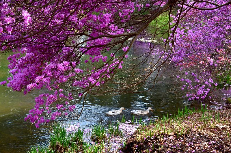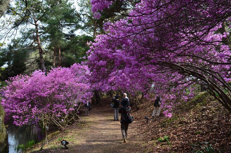 南の馬見塚(まみづか)公園のミツバツツジは今が見頃で花付きが良く綺麗。