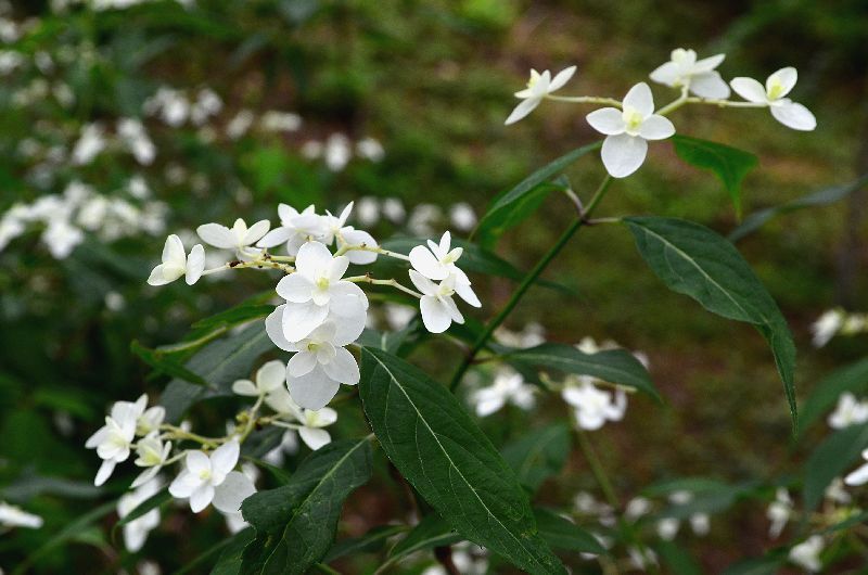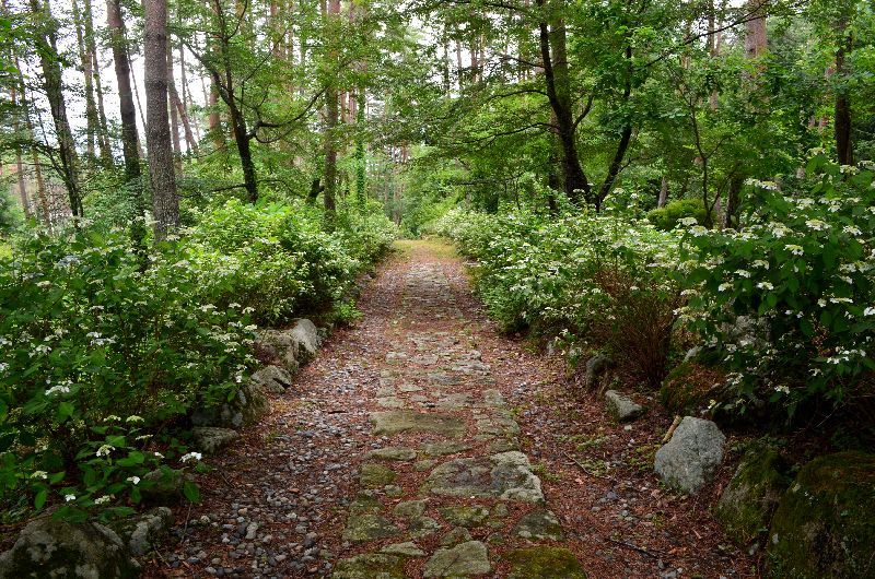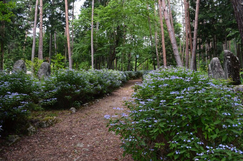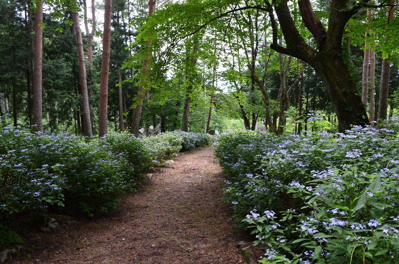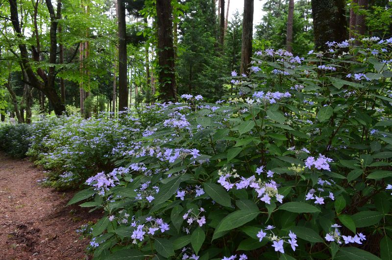 数百m続く参道の両側の山紫陽花の紅は今はまだ白だが10日もすれば紅色になる。