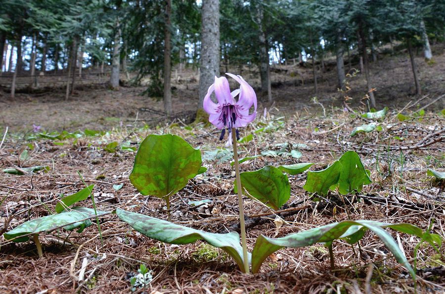 箕輪町木下出羽殿地籍のカタクリ 撮影 2014.4.28/5.3