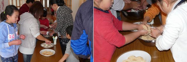 毎年同じ作り方だが忘れてしまって…。 教えを受けながら作るが綺麗に作るのは結構難しい。