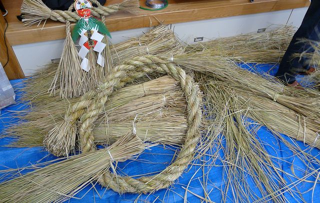 神社用の注連飾りと太い注連縄。 注連縄は6本編む