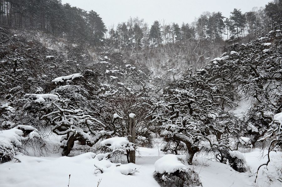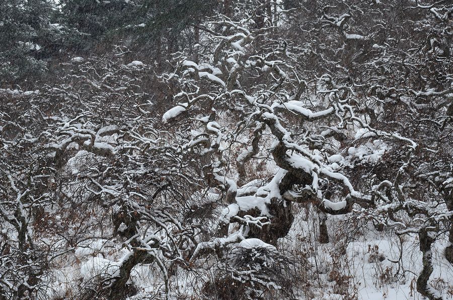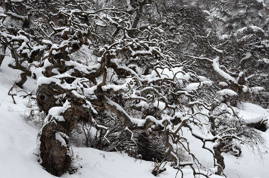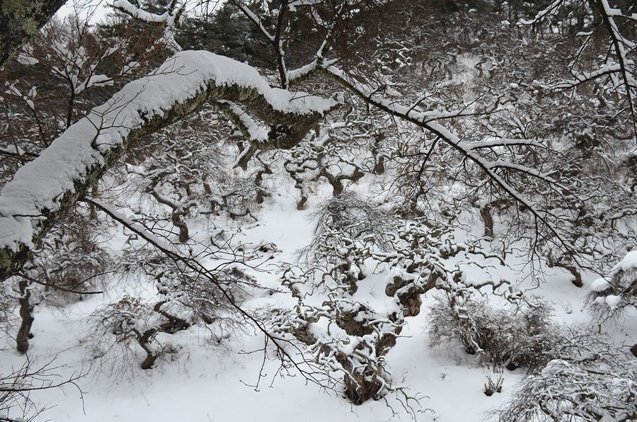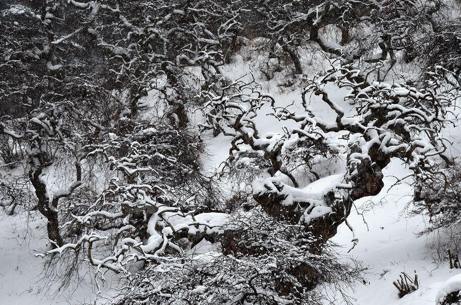 辰野町小野・枝垂れ栗の雪化粧 撮影 2015.1.1