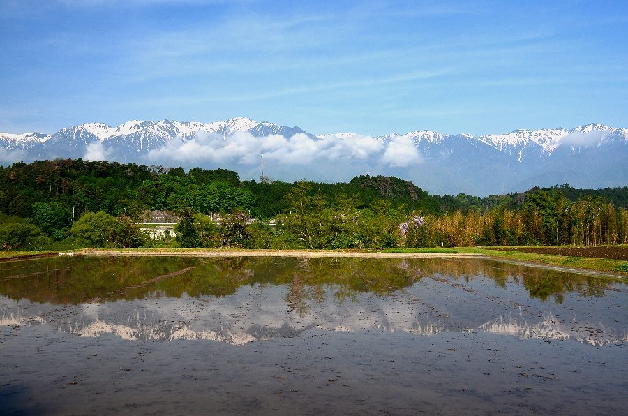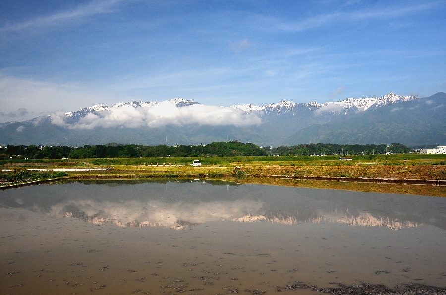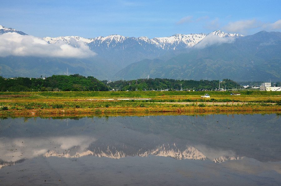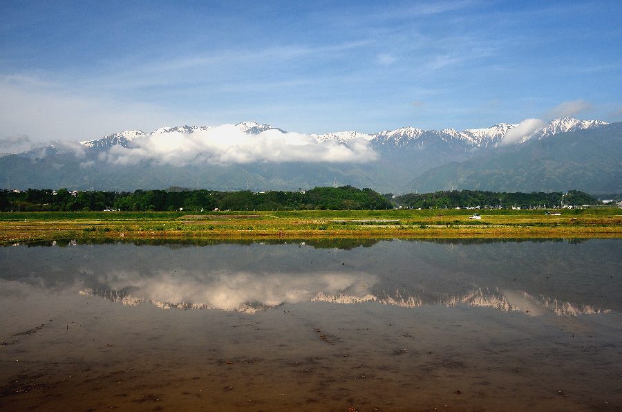 GWの景色(田んぼの水鏡、雪形、芝桜) 撮影 2015.5.1〜6